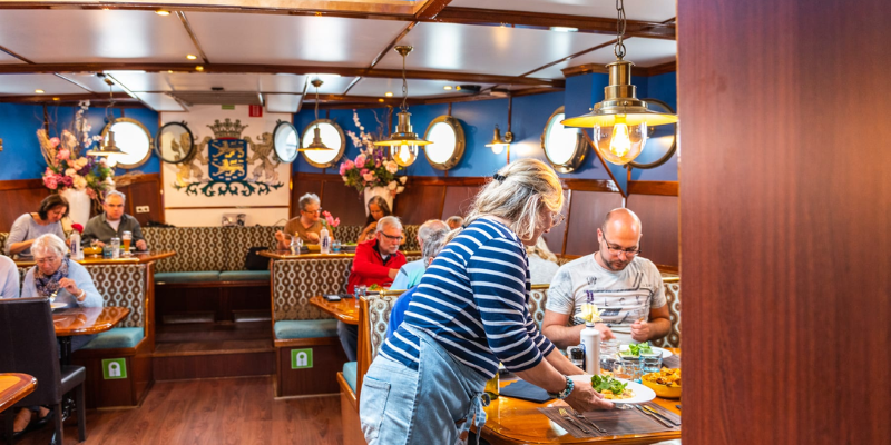 Die Route führt unter anderem nach Texel, Terschelling, Harlingen, Makkum und Stavoren. Historische Hafenstädte wechseln sich ab mit weiten Stränden und stillen Naturabschnitten. Tagsüber sind die Gäste mit dem Fahrrad auf gut ausgebauten Wegen unterwegs, oft mit Blick auf Deiche, Dünen oder das offene Meer. Ist ausreichend Wind, werden die Segel gesetzt. Wer möchte, hilft mit, zieht an Leinen oder beobachtet die eingespielte Zusammenarbeit der Crew. Niemand muss – aber jeder darf. Zurück an Bord entsteht ein ruhiger Ausklang: ein Platz auf dem Sonnendeck, Gespräche mit Mitreisenden oder einfach der Blick aufs Wasser. Diese Mischung aus Aktivität und Entspannung empfinden viele als angenehm ausgewogen.