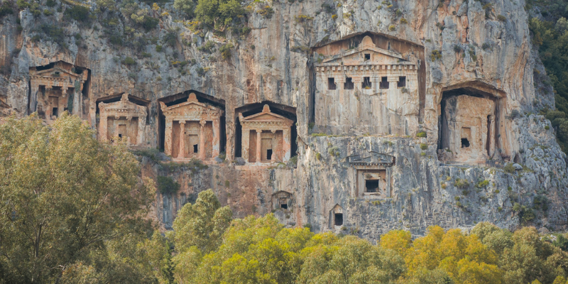 • Kaunos: Diese antike Stadt liegt am Dalyan-Flussdelta und war einst ein bedeutsames Handelszentrum. Heute kann man hier die Überreste und einige der schönsten lykischen Felsgräber entdecken. Im 4. Jahrhundert v. Chr. in den Felsen über dem Fluss gemeißelt, wurden sie schnell zum Wahrzeichen einer ganzen Region.