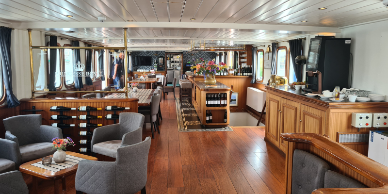 Gemütlich, gesellig, lecker. Beim Abendessen kommen wir mit anderen Gästen ins Gespräch – es wird viel gelacht und erzählt. Und das Essen! Jedes Mal eine Überraschung: frisch, kreativ und mit regionalen Zutaten. Ich freue mich jeden Abend aufs Neue. Und die Princesse Royal ist einfach ein tolles Schiff mit einer ganz besonderen Atmosphäre. Man reist in einer kleinen Gruppe von maximal 31 Passagieren, wodurch sich alle richtig gut kennenlernen.