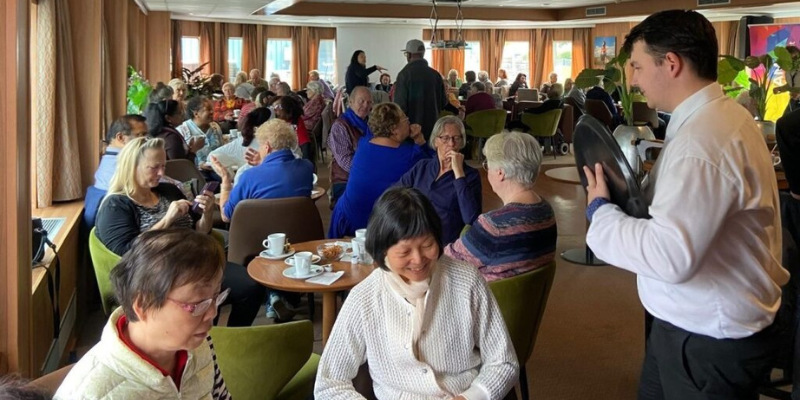 An einem sonnigen Sonntag, direkt nach dem Ende unserer Fahrsaison, machte die De Amsterdam noch einmal die Leinen los. Doch diesmal waren keine typischen Reisenden an Bord: Wir begrüßten 100 ältere Gäste aus ganz Amsterdam zu einem besonderen Tag auf dem Wasser, mit Geschichten, Musik und viel Herzenswärme. Und das alles vollkommen kostenfrei.