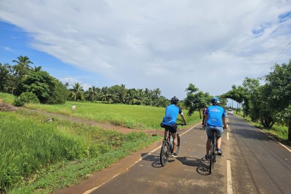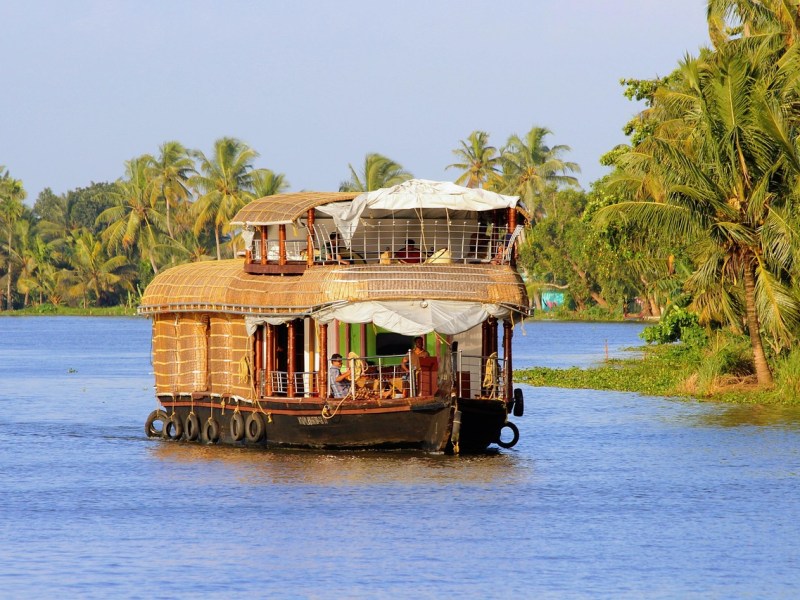 Nach dem Frükstück an Bord beginnt Ihre heutige Radtour und führt Sie zuerst zum Lord Krishna Temple in Ambalapuzha – ein lebendiger Ort, an dem Sie mit Einheimischen und Tempelbesuchern ins Gespräch kommen und einen authentischen Einblick in das alltäglische Leben vor Ort erhalten können. Nach der Besichtigung radeln Sie weiter durch die malerischen Landschaften von Kuttanad und dem Pumba-Fluss, wo Sie einen Blick auf die Fischmärkte und das tägliche Leben an einem Wasserkanal erhaschen können. Bei einer Teepause in einem kleinen Laden geniessen Sie die ruhige Atmosphäre des ländlichen Keralas. Ein nächster Halt is die weiss getünchte, ruhig gelegene berühmten St. Mary’s Basilika. Inmitten üppiger Reisfelder genießen Sie Ihr Mittagessen in Picknickform. Am Nachmittag kehren Sie zum Hausboot zurück. Es folgt eine gemütliche Weiterfahrt durch die Backwaters. Den Tag lassen Sie bei einem Abendessen an Bord entspannt ausklingen.
