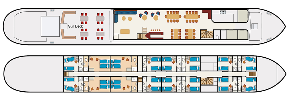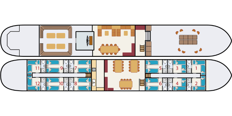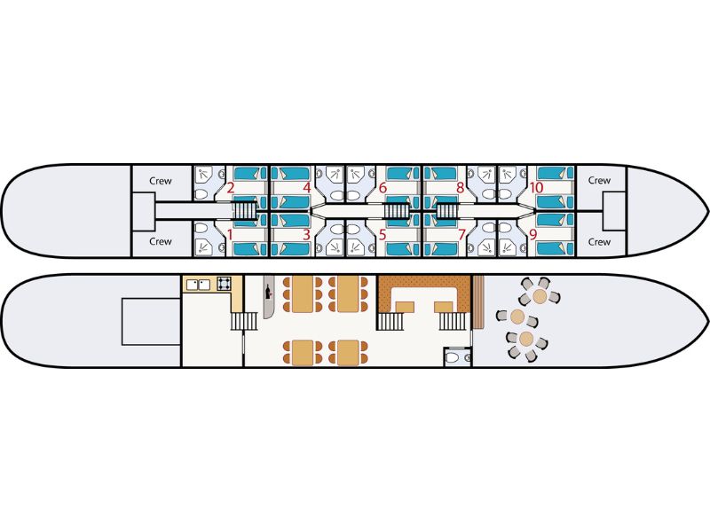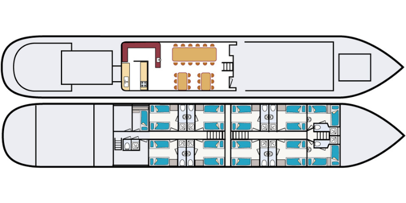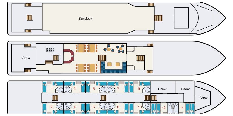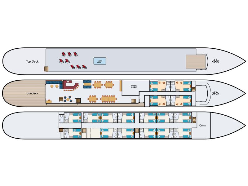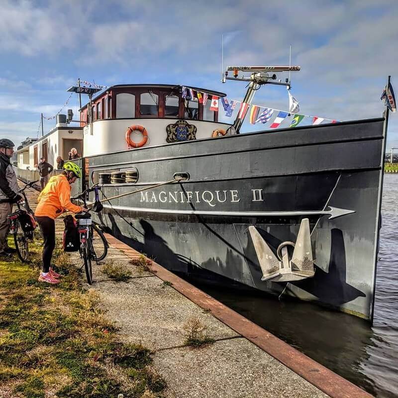 Neben den Radtouren legen Sie einen Teil der Strecke mit dem Schiff zurück, das jeden Tag ein neues Ziel ansteuert. Sie übernachten an Bord und Ihr Abendessen und Ihr Frühstück werden Ihnen auf dem Schiff serviert. Sie können außerdem ein Lunchpaket mitnehmen und zwischen einer längeren und einer kürzeren Radtour wählen. Und wenn Sie mal nicht radeln möchten, können Sie einfach an Bord bleiben und zum nächsten Anleger mitfahren. Es gibt Leihfahrräder an Bord (nicht auf der Fleur), aber Sie können auch Ihr eigenes Fahrrad mitbringen (nicht möglich auf Fleur & Clair d’Etoile).