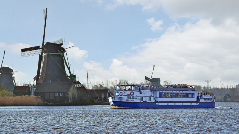 Bereits um 06:30 Uhr gibt es einen Morgenkaffee. Am frühen Morgen radeln Sie zur größten Blumenauktion Europas in Aalsmeer. Jeden Tag werden hier riesige Mengen an Blumen angeliefert, verkauft und nach ganz Europa exportiert – eine logistische Meisterleistung! Nach dem Besuch kehren Sie um 09:00 Uhr zum Schiff zurück, um in Ruhe zu frühstücken. In der Zwischenzeit fährt das Schiff nach Amsterdam und bis ins Stadtzentrum. Die heutige Radtour führt von Amsterdam zur Zaanse Schans, einem einzigartigen altholländischen Dorf in Nähe des Flusses Zaan. Das Dorf mit traditionellen Holzhäusern wird von den zahlreichen, noch immer funktionstüchtigen Windmühlen dominiert. Die älteste wurde im Jahr 1673 gebaut und noch heute werden sie zum Mahlen von Senf, Gewürzen, Farben und Öl und zur Produktion von Holz eingesetzt. Im Dorf finden Sie zudem ein Uhrenmuseum, ein traditionelles Lebensmittelgeschäft, ein Haus mit historischer Einrichtung, ein Holzschuhmacher und eine Käserei.