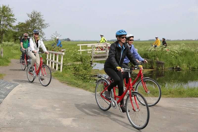 Sie besuchen das Freilichtmuseum Zaanse Schans mit Windmühlen, Käsereien und pittoresken Holzhäuschen. Lassen Sie sich von der atemberaubenden Landschaft überraschen und verlieben Sie sich in die schönsten Radstrecken Hollands.