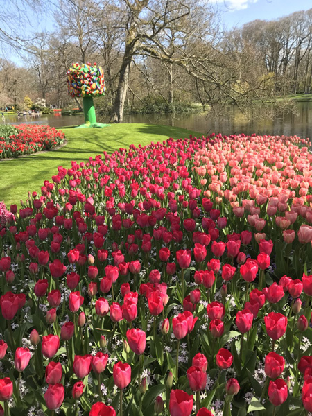 Die heutige Etappe führt Sie an den ältesten Tulpenfeldern der Niederlande vorbei. Anschließend steht ein Besuch des Keukenhofs, dem schönsten Blumenpark der Welt, auf dem Programm. Hier erleben Sie das Frühlingserwachen in seiner ganzen Pracht: Sieben Millionen blühende Tulpen inmitten einer 32 Hektar großen Gartenanlage mit klassischen und modernen Arrangements und einem überwältigendem Farbenspiel. Verschiedenste Hyazinthenarten, Narzissen und weitere Blumen ergänzen das farbenfrohe Spektakel. Am Nachmittag geht es mit dem Fahrrad weiter nach Leiden. Nach dem Abendessen können Sie an einen Spaziergang durch Leiden teilnehmen.