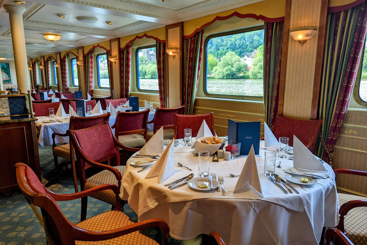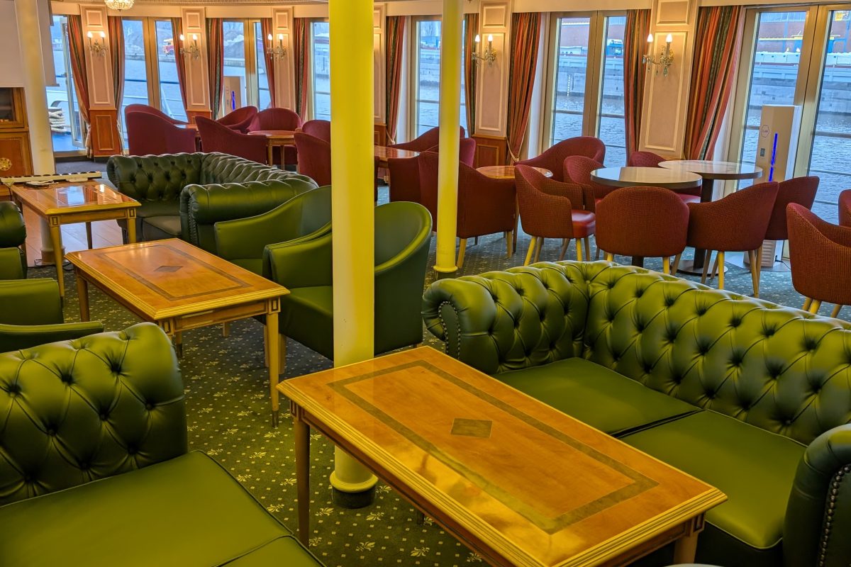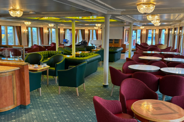 Der schlossähnliche Panorama-Salon mit gemütlicher Bar lädt zum Verweilen ein – ob bei einem Glas Wein oder einem Cocktail. Im stilvoll eingerichteten Restaurant verwöhnt Sie die Küchencrew mit abwechslungsreichen Menüs. Das großzügige Sonnendeck mit Liegestühlen und Sitzbereichen, teilweise überdacht, bietet ideale Bedingungen für entspannte Stunden an der frischen Luft.